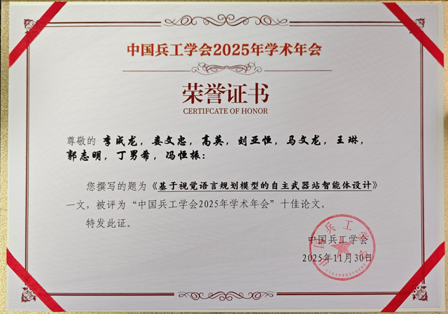 北理工学子获“中国兵工学会2025年学术年会”十佳论文奖2025-12-17 -